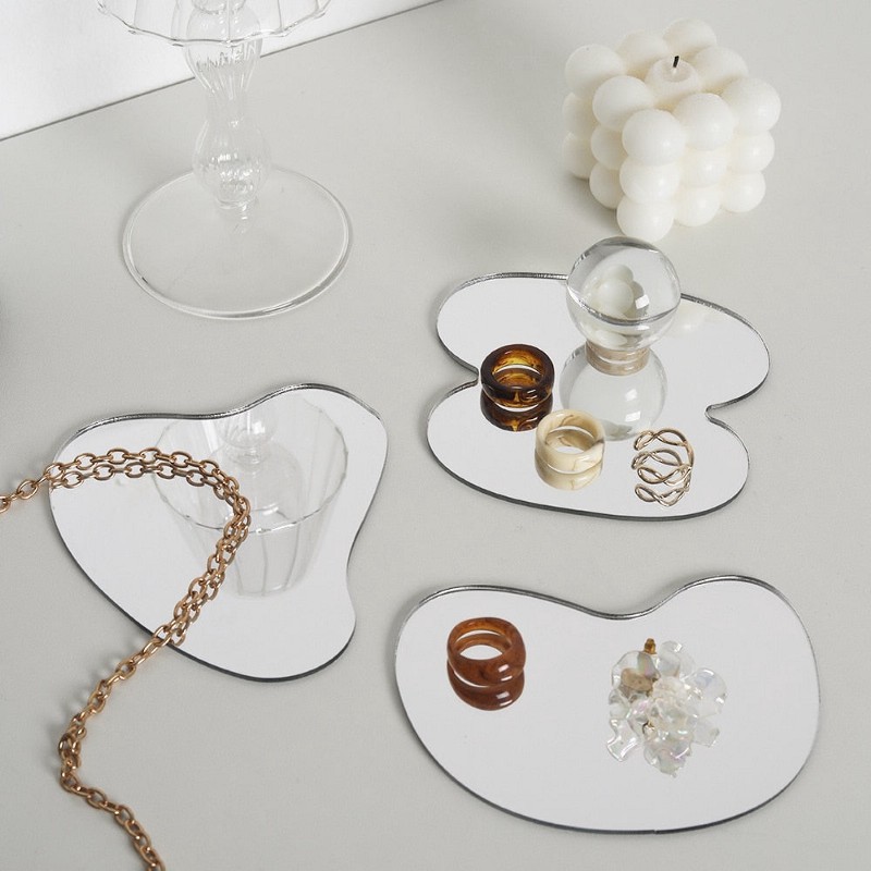 These product photography props can be used to highlight specific features of your products or to create stunning, abstract compositions that are sure to leave a lasting impression on your audience. Whether you're shooting jewelry, cosmetics, or any other type of product, these acrylic irregular mirrors are a versatile and effective tool that can take your photography to the next level.